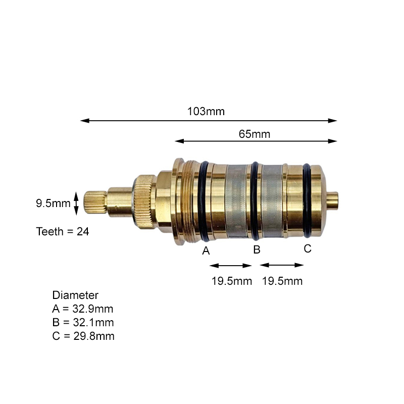 103mm long metal bodied replacement thermostatic shower cartridge to suit numerous different showers